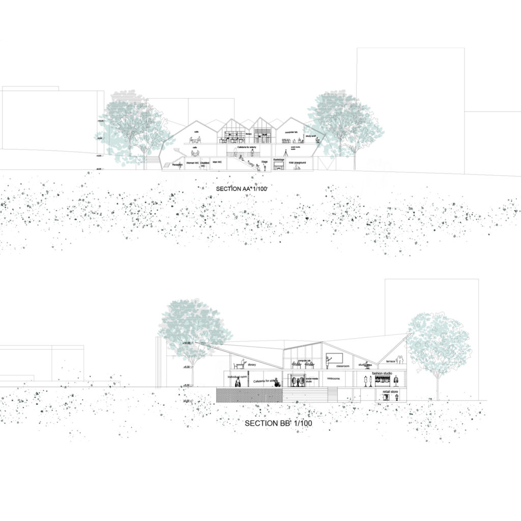 Beyond the Window references Hitchcock’s Rear Window, where the act of looking defines power and agency. In contrast, this project reclaims visibility as empowerment. Etimesgut’s future as a sustainable hub depends not only on ecology but also on gender equality. This project empowers women through learning, creation, and economic opportunity, addressing deep-rooted inequalities. The ground floor functions as a street, demonstrating women’s work through exhibitions and retail stores. Upper floors bring elderly and women together, functioning both for accommodation and studios. The angular rigid geometry contrasts with the Eastern orientalist feminine approach, emphasizing women’s visibility yet staying simple with concrete and glass.