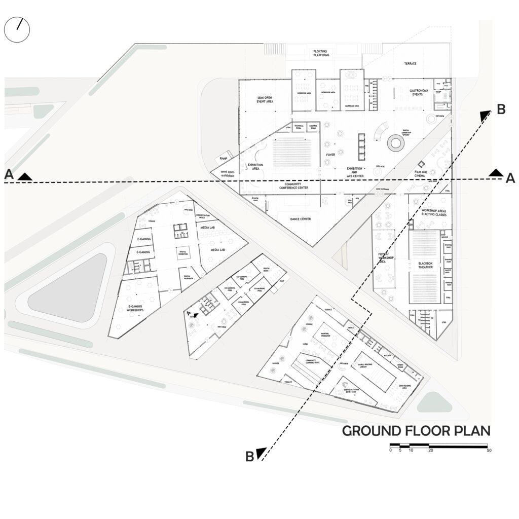 “East Harbour ZIP” reimagines Frankfurt’s Osthafen, once an industrial hub producing raw materials, into an engine of cultural, social, and intellectual production. Addressing migration-related fragmentation and brain drain, the project transforms this strategic zone—located between Offenbach’s dense migrant population and Frankfurt’s gentrified city center—into a space of opportunity for both locals and nonlocals. Through the “ZIP” concept, it stitches together divided urban fabrics via production circles fostering innovation, creativity, human connection, and knowledge. Former industrial grounds now host cultural nodes, social factories, and knowledge hubs—producing not goods, but ideas, art, and community—marking a shift from industrial economy to inclusive urban regeneration.