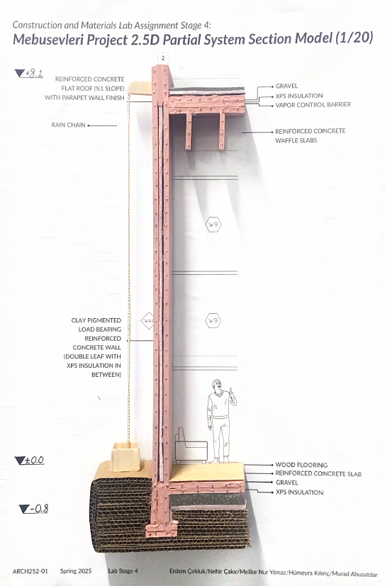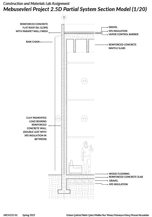 In Spring 2025, ARCH 252 focused on transforming architectural design ideas into buildable systems through a semester-long group lab. Working from a selected studio project, students developed structural and material strategies, producing full sets of technical drawings—including foundation, framing, wall, floor, stair, and façade systems—alongside two scaled physical models. The lab emphasized real-world construction thinking, requiring accurate documentation, system integration, and representational clarity, culminating in a comprehensive submission that bridged design intention with tectonic resolution.